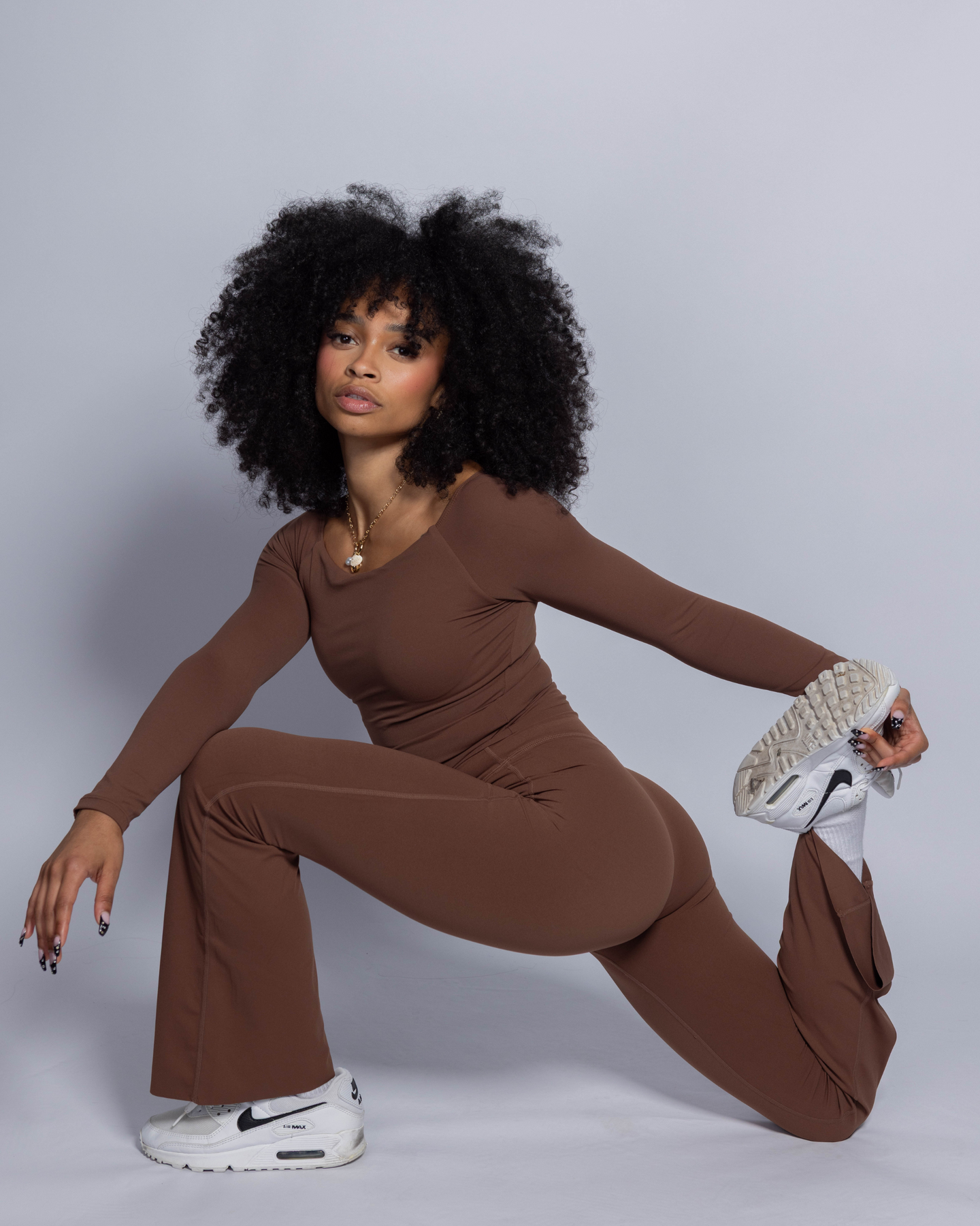 Ideal como ropa deportiva para gimnasio, yoga, pilates o entrenamientos funcionales, y lo suficientemente versátil para llevar en tus actividades diarias. Su pantalón flare estiliza las piernas y aporta un toque elegante, mientras que el top deportivo y la t-shirt opcional te permiten crear looks adaptados a tu estilo.