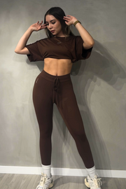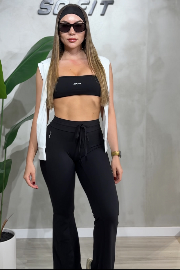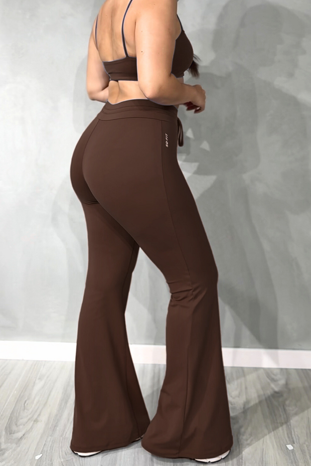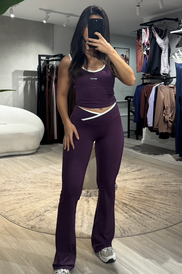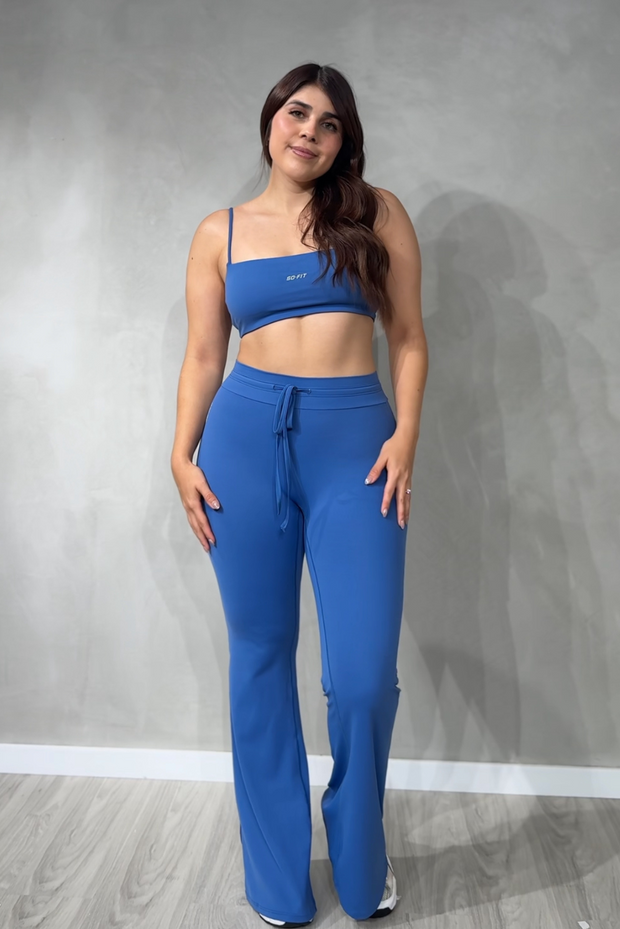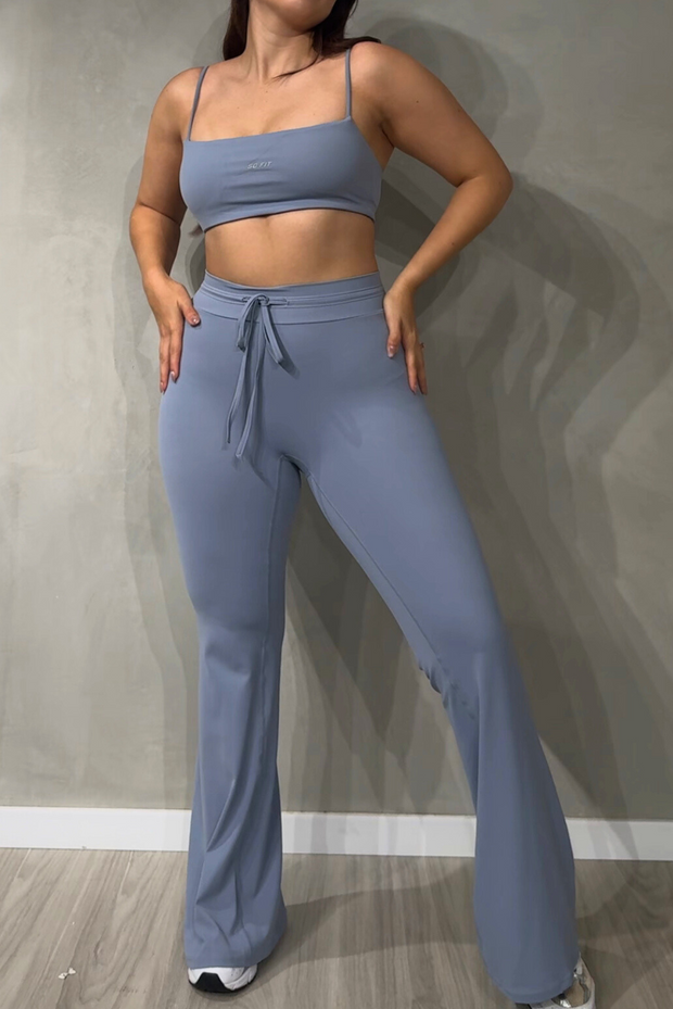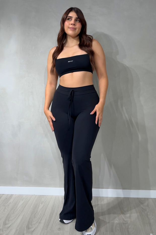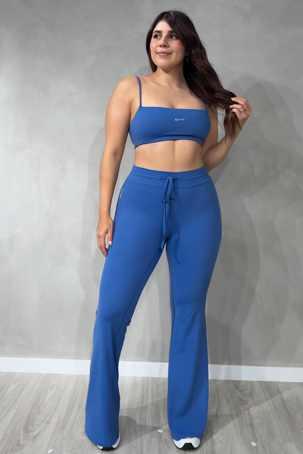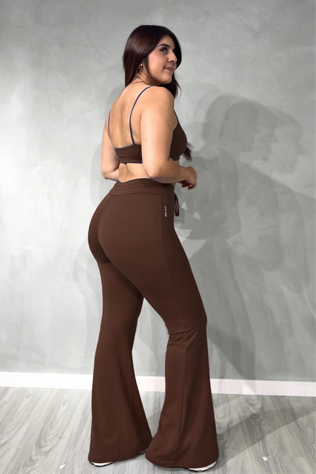 Ideal como ropa deportiva para gimnasio, yoga, pilates o entrenamientos funcionales, y lo suficientemente versátil para llevar en tus actividades diarias. Su pantalón flare estiliza las piernas y aporta un toque elegante, mientras que el top deportivo y la t-shirt opcional te permiten crear looks adaptados a tu estilo.