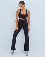 🏓 Su diseño de pantalón acampanado de tiro alto estiliza la figura, este set es imprescindible para quienes buscan un look deportivo sofisticado sin sacrificar rendimiento.